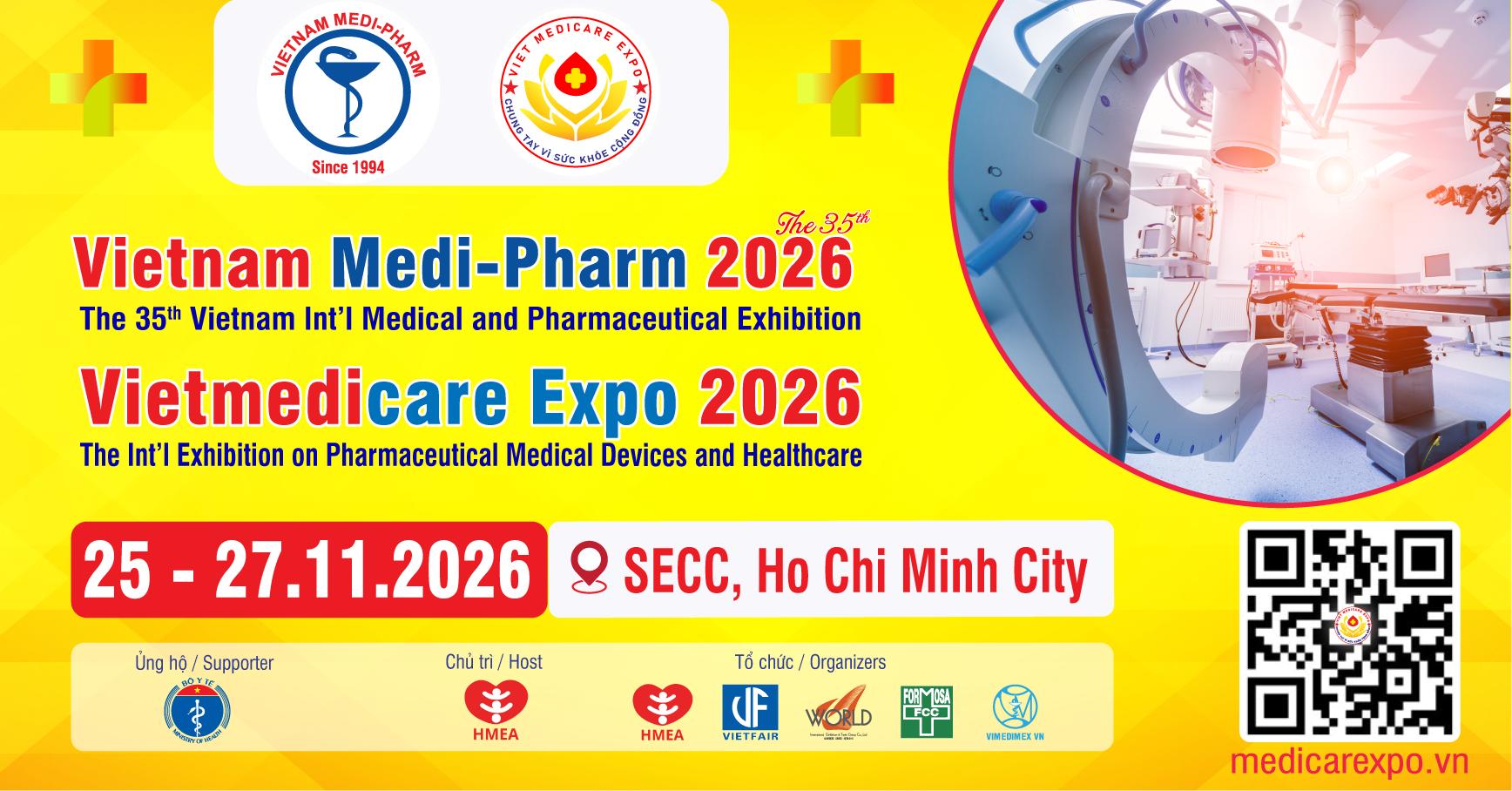 Hội thiết Bị Y tế Thành phố Hồ Chí Minh chủ trì và phối hợp tổ chức Triển lãm quốc tế chuyên ngành Y dược lần thứ 35 / Triển lãm quốc tế Dược phẩm, Trang thiết bị y tế và Chăm sóc sức khoẻ tại Việt Nam – VIETNAM MEDI-PHARM 2026 – VIETMEDICARE EXPO 2026